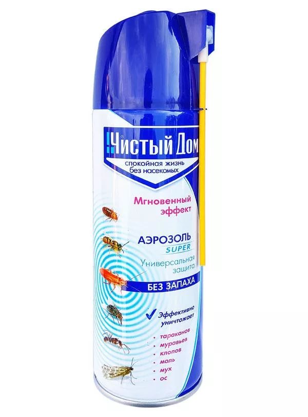обработку начинать с противоположного от входа конца помещения, постепенно отступая к входу, нажимая на распылитель и направляя струю «Чистый Дом аэрозоль супер» в воздух и на места скопления насекомых. Обработку проводить при закрытых окнах и дверях.